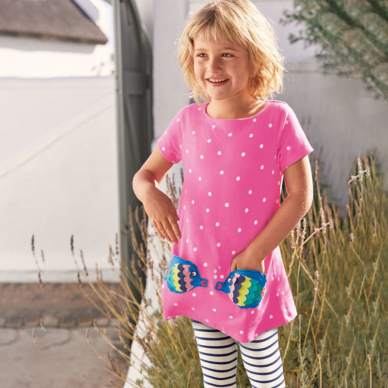 Girl Dress Girls' Summer Knitted Cotton round Neck Embroidered Princess Dress Cute Pocket