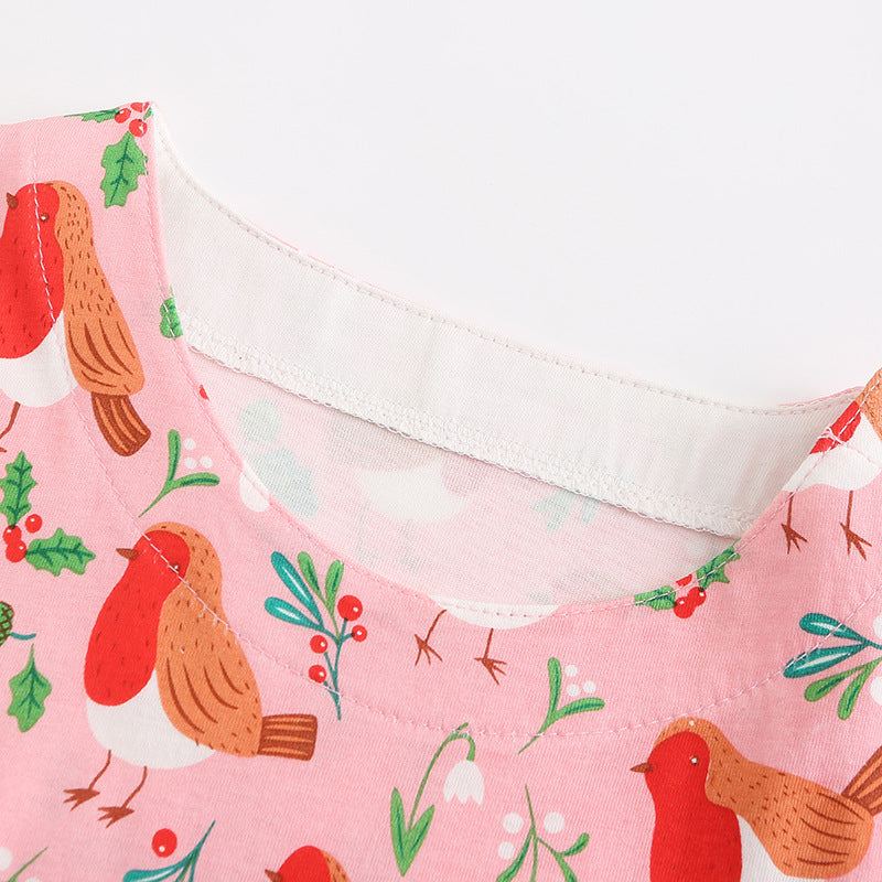 Girl Dress Summer Girls Dress Knitted Cotton Cartoon Print Cute Short Sleeve