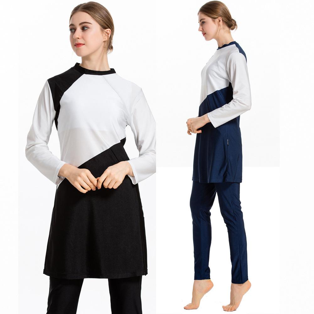Burkini Muslim Swimwear Plus Size Conservative Swimsuit Color Matching Three-Piece Suit