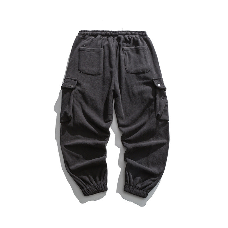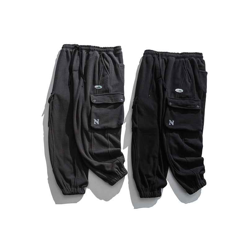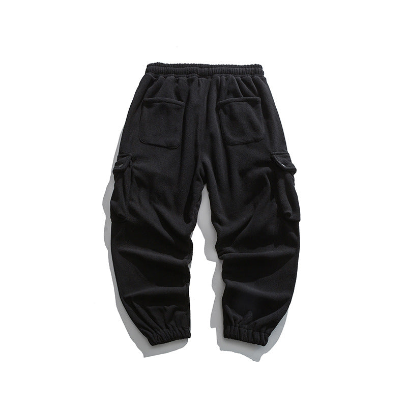 Man Fall Winter Outfis Winter Clothes Loose-Fit Tappered Trousers Boys Solid Color Simple Multi-Pocket Cargo Pants
