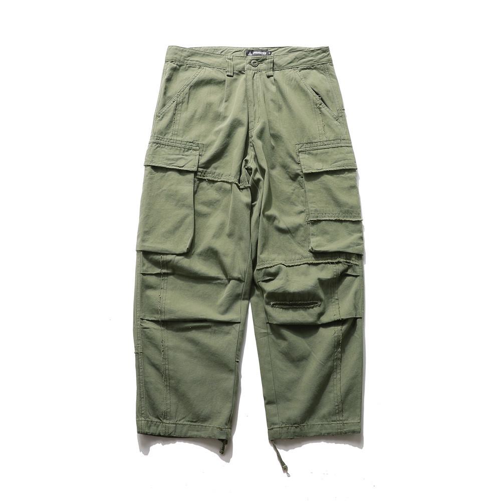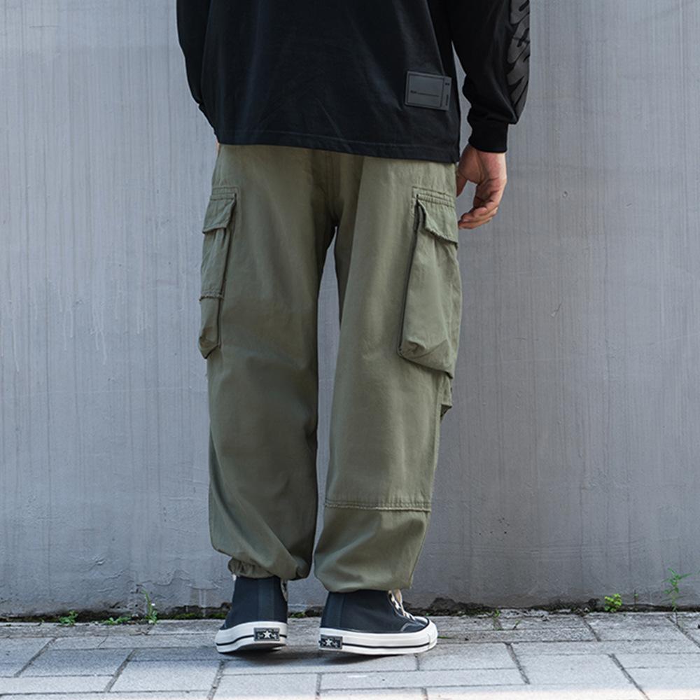 Multi-Pocket Cargo Pants Men's Elastic Waist Drawstring Ankle Banded Pants Street Trend Loose Large Size Retro Sports Straight-Leg Trousers Men Pants