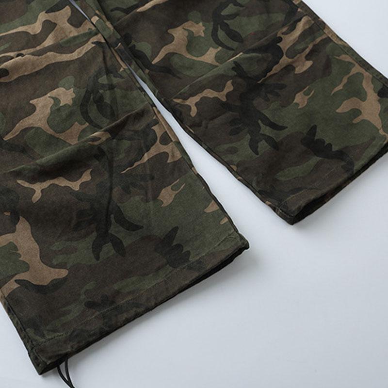 Military Style Camouflage Cargo Pants Men's plus Size Retro Sports Wide Leg Pants Street Fashion Ankle-Tied Trousers Men Pants