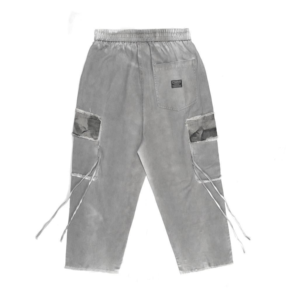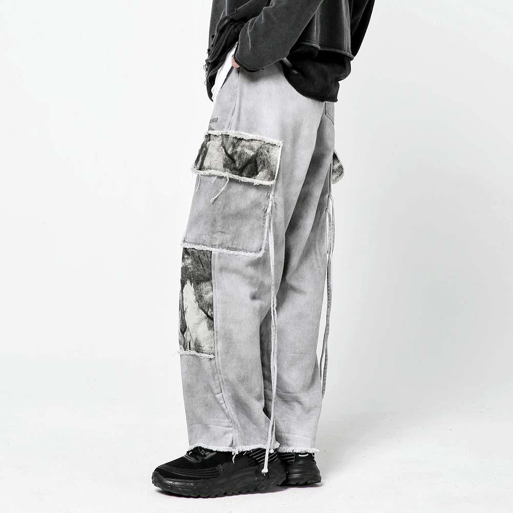 Stitching Multi-Pocket Cargo Pants Men's Large Size Retro Sports Ribbon Wide-Leg Pants Trendy Elastic Waist Pants Men Pants