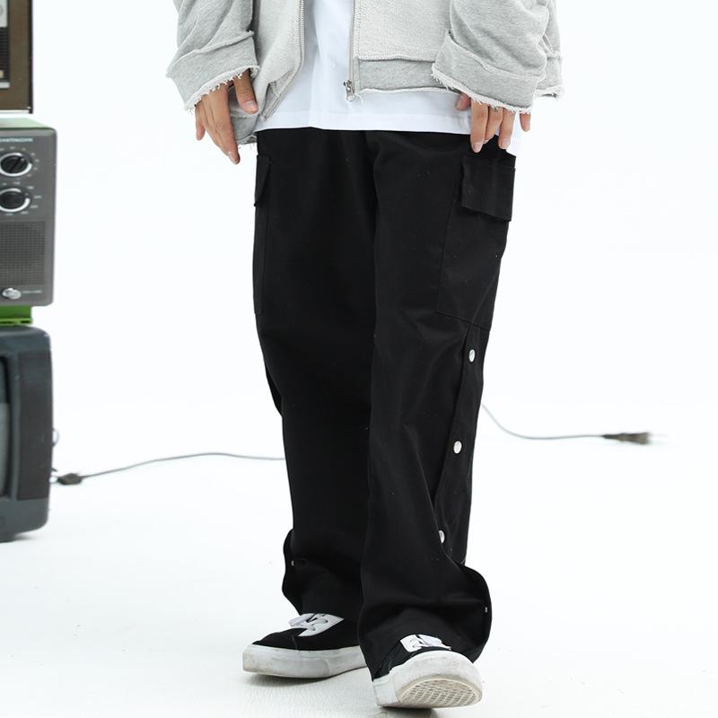 Men's Large Size Retro Sports Wide Leg Pants Men's Fashion Brand Hip Hop Trousers Straight-Leg Pants Street Multi-Pocket Loose Cargo Pants Men Pants