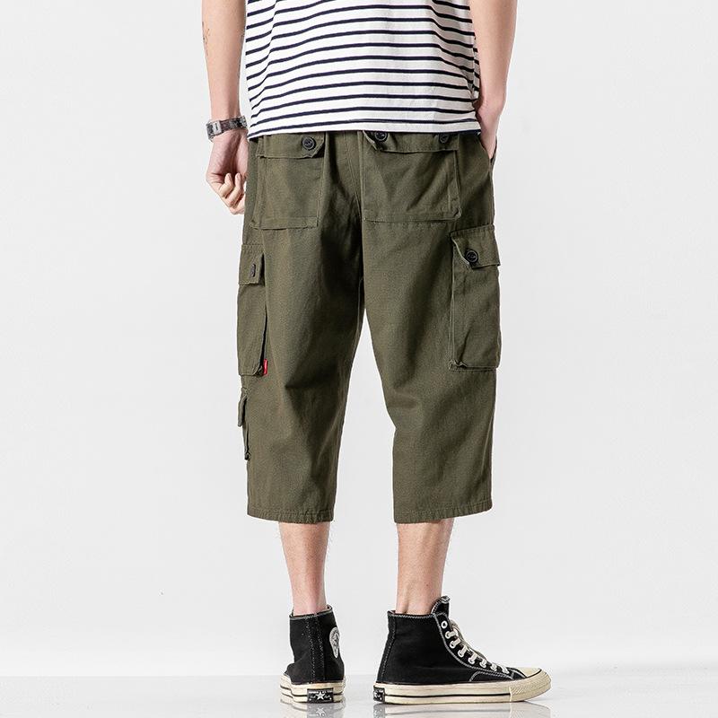 Men's Capris Pants below the Knee Shorts Summer Vintage Men's Pants Casual Loose Oversized Cargo Pants