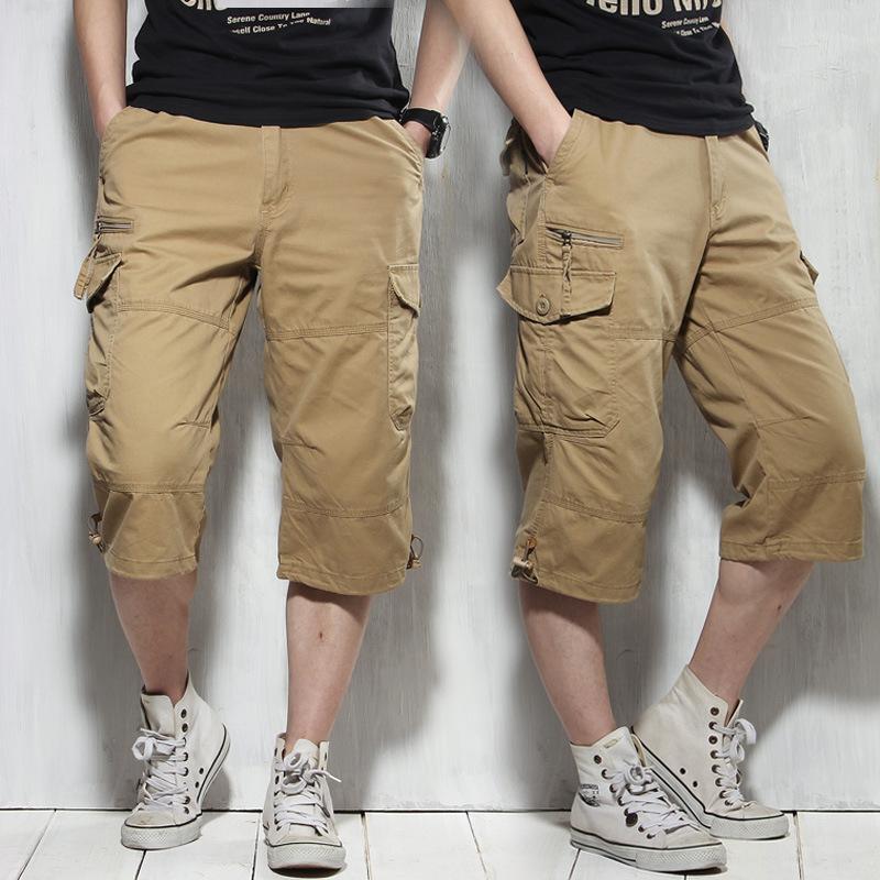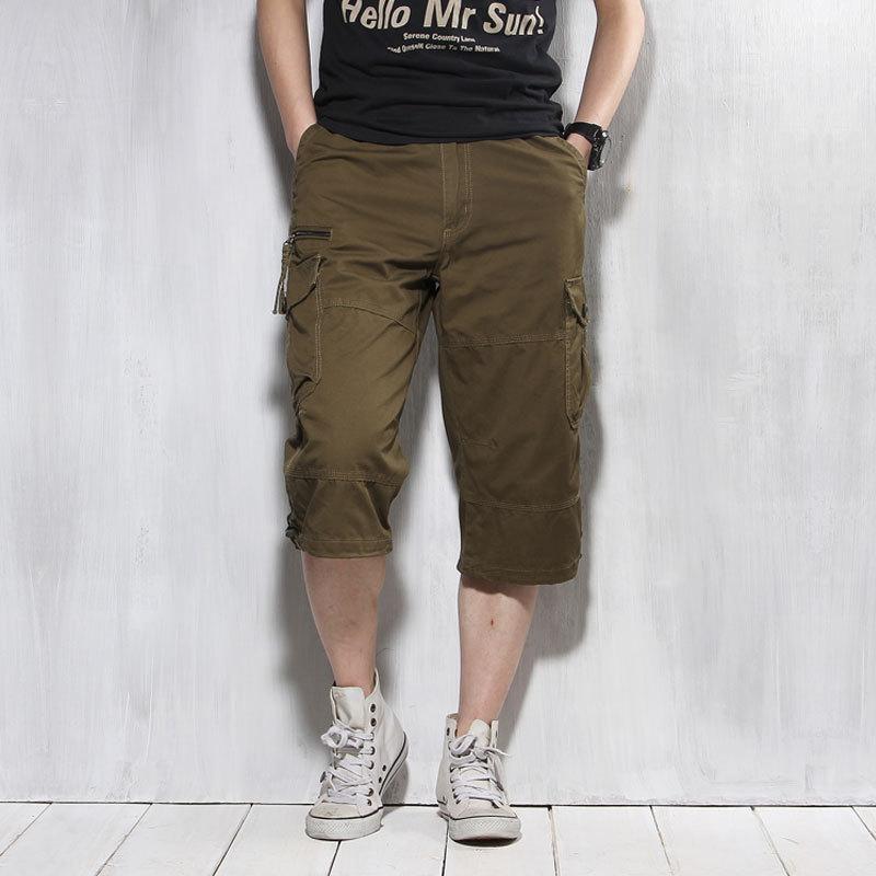 Men's Capris Pants below the Knee Shorts Summer Men's Oversized Cargo Pants Cotton Shorts