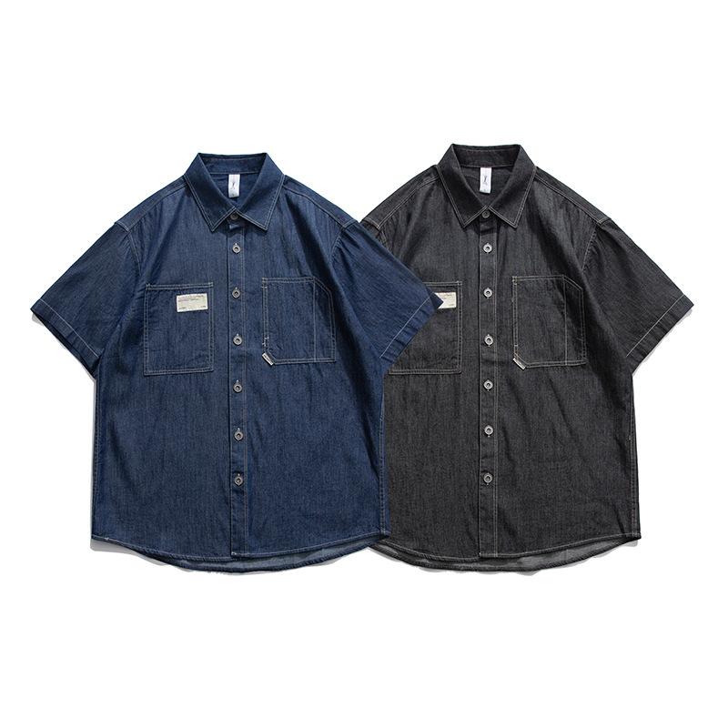Men T Shirt Summer Casual Tops Men's Clothes Summer Wear Retro Men's Lapel Shirt Casual Denim Cargo Pants Shirt Trendy Men