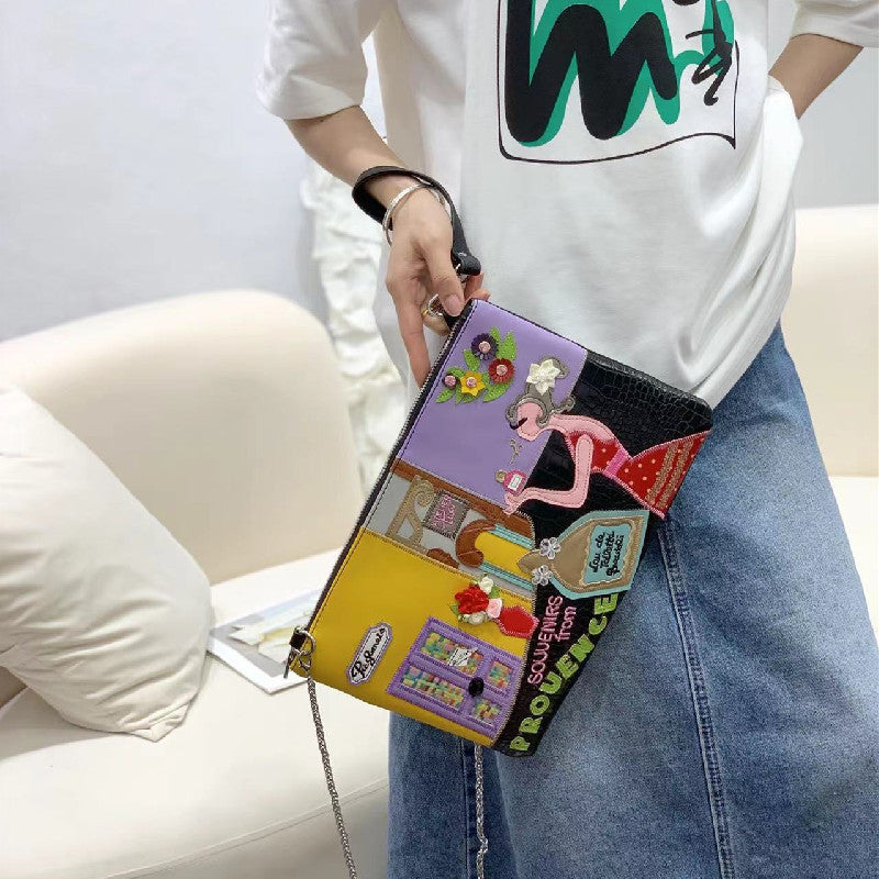 Chh Chrome Heart Leather Bag Embroidered Shoulder Crossbody Bag