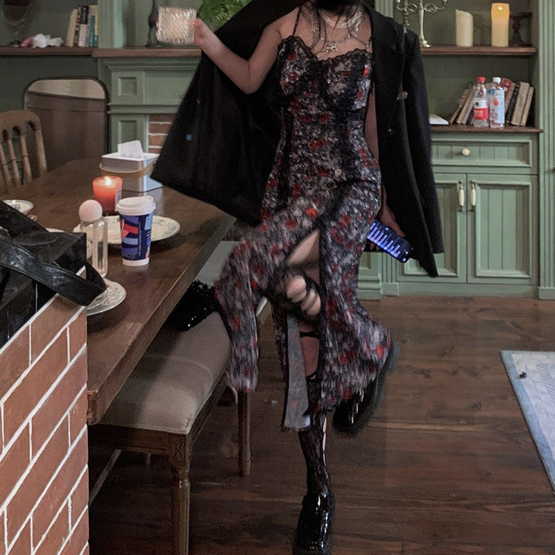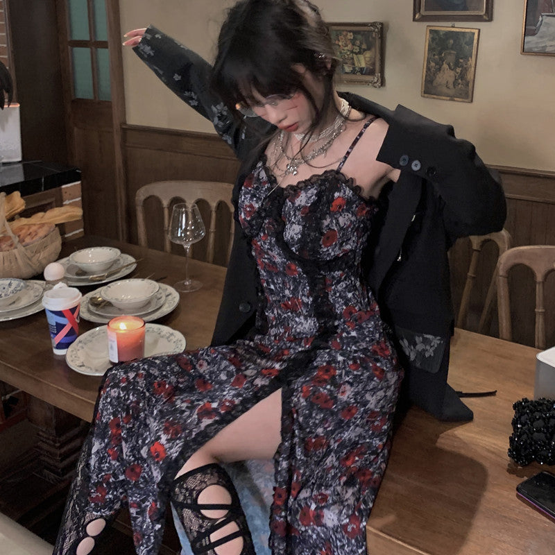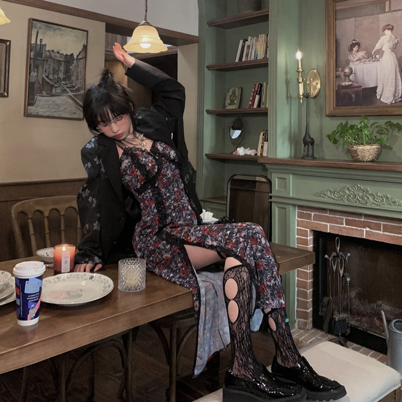 Vintage Empire Waist Dress Slimming Dress for Women Split Floral Skirt Spring
