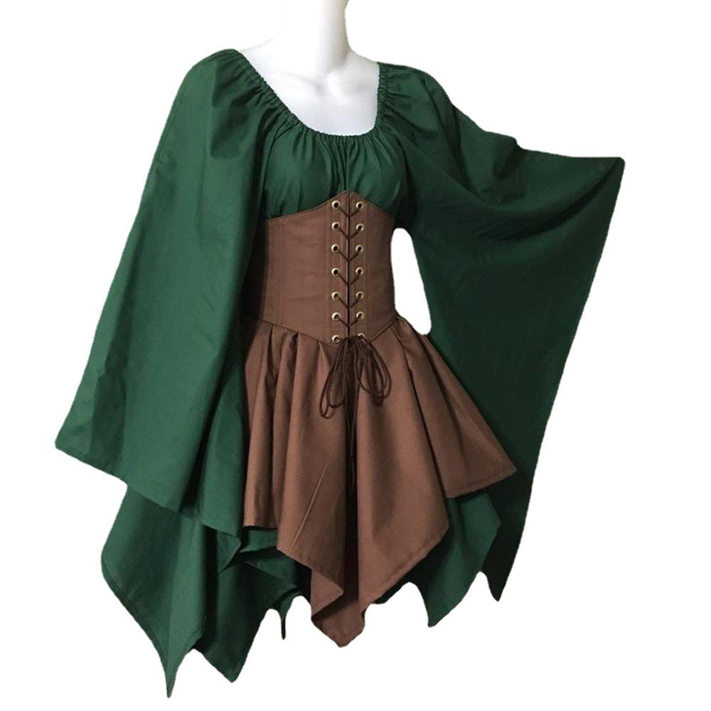 Vintage Empire Waist Dress Party Long Sleeve Women's Stitching Dress