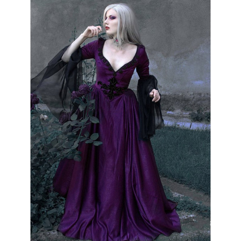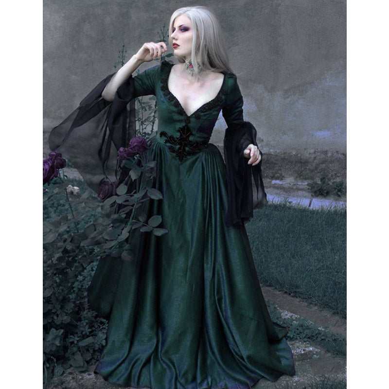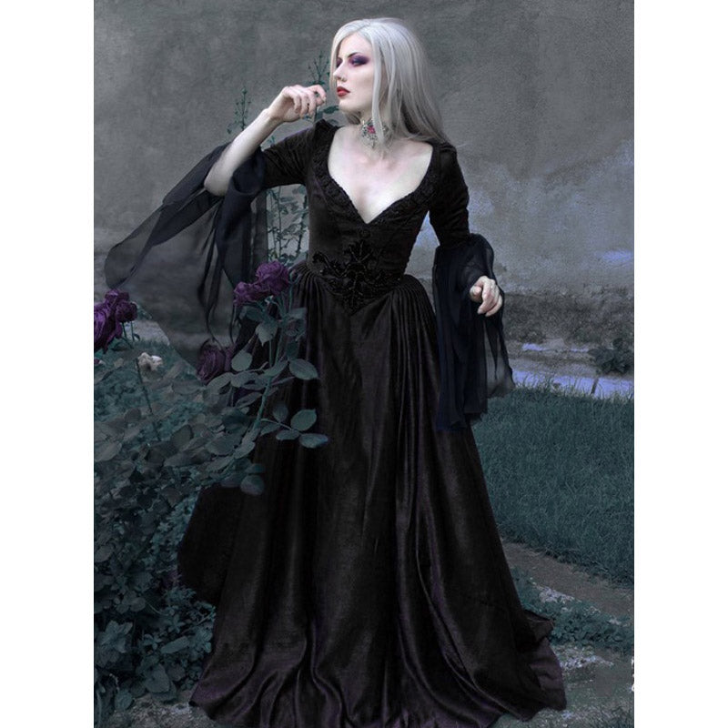 Vintage Empire Waist Dress Solid Color Lace Sexy Low-Cut Dress