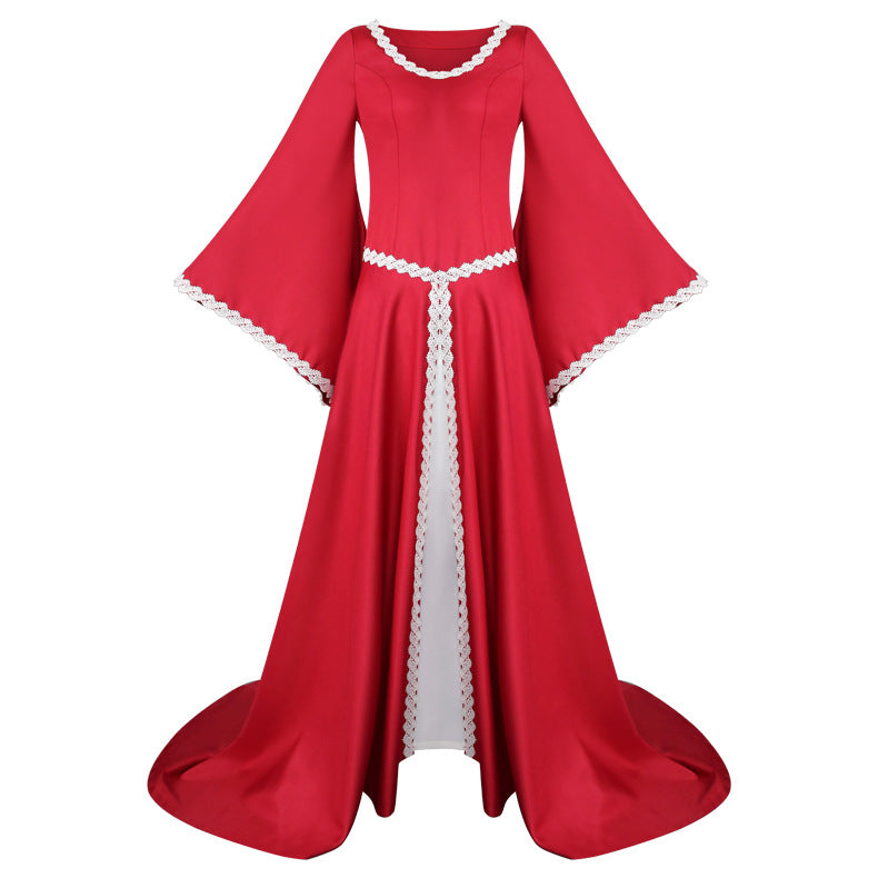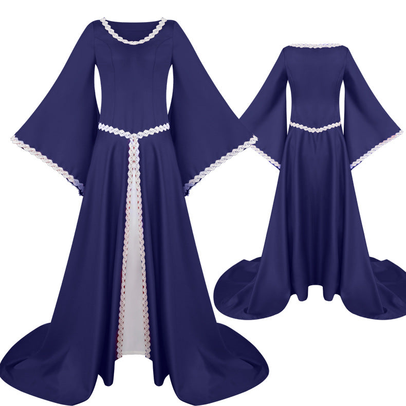 Vintage Empire Waist Dress Women's V-neck Medieval Performance Wear Dress