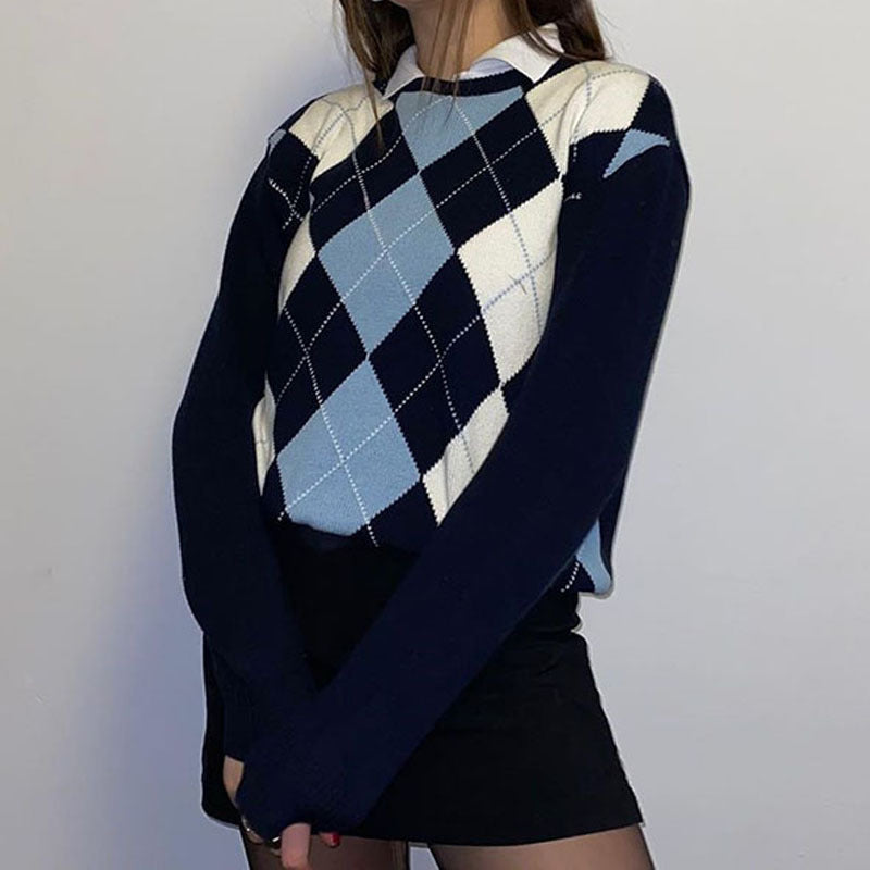 Preppy Aesthetic Outfits Knitwear Women's Autumn and Winter round Neck Long Sleeve Top