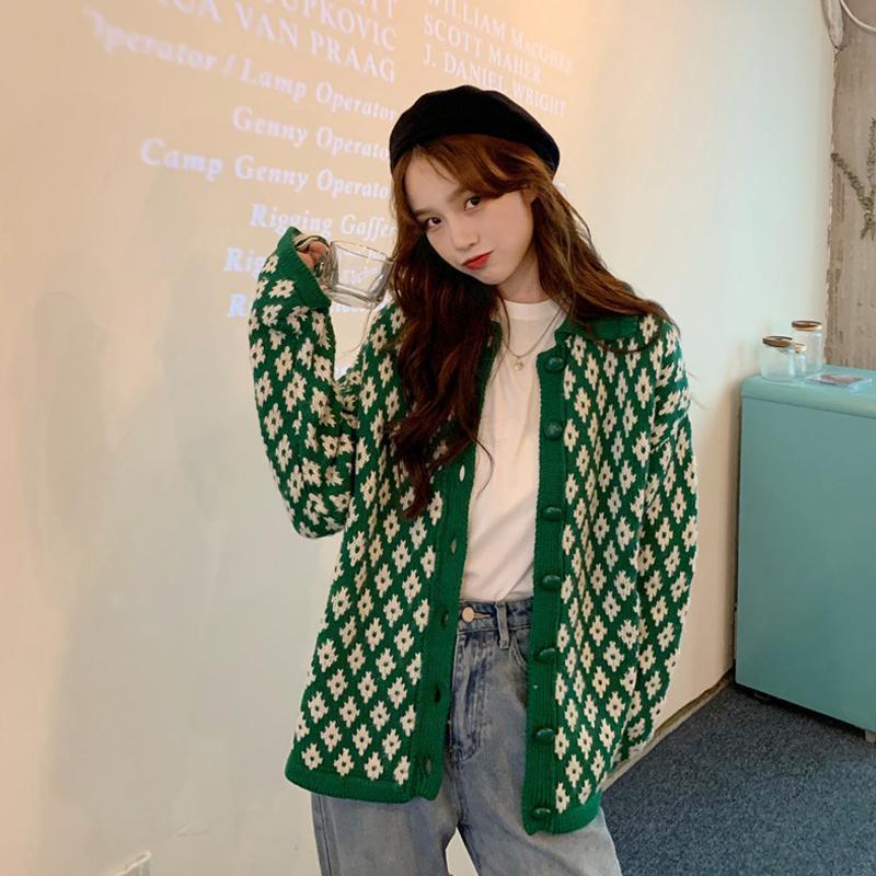 Preppy Aesthetic Outfits Knitwear Cardigan Sweater Coat Women's Autumn Diamond Quilted Top