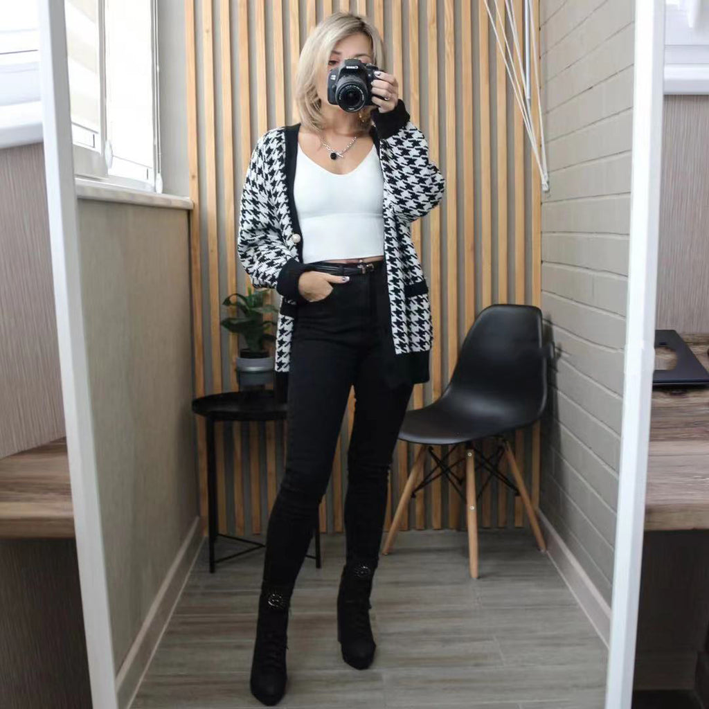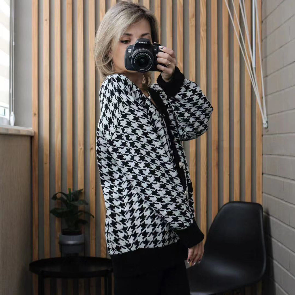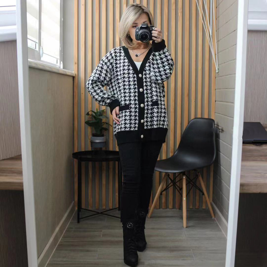Preppy Aesthetic Outfits Knitted Cardigan Women's Autumn and Winter Loose V-neck Long-Sleeved Knitted Jacket