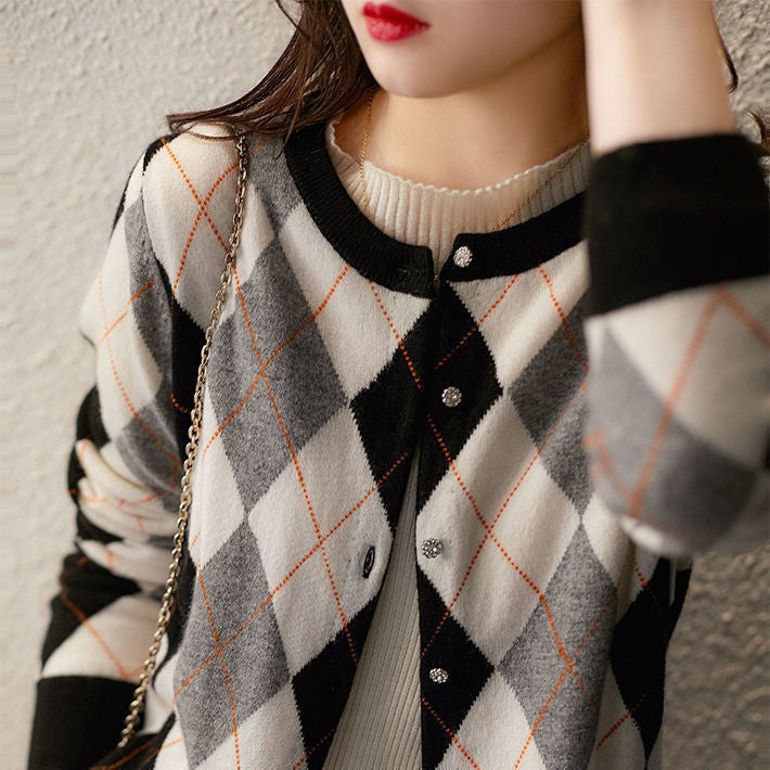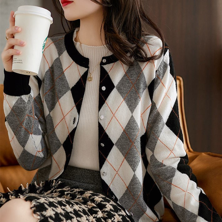 Preppy Aesthetic Outfits Plaid Vintage Knitted Cardigan Sweater Women's Fashion Small Coat Women