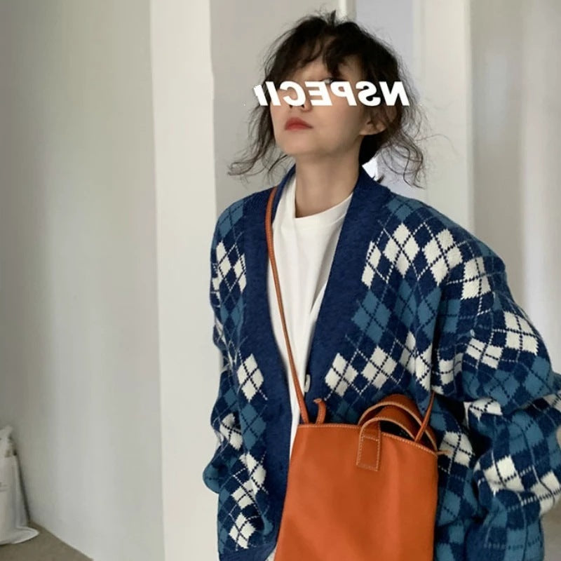 Preppy Aesthetic Outfits Spring and Autumn Loose and Lazy Style Sweater Coat Female Cardigan Top