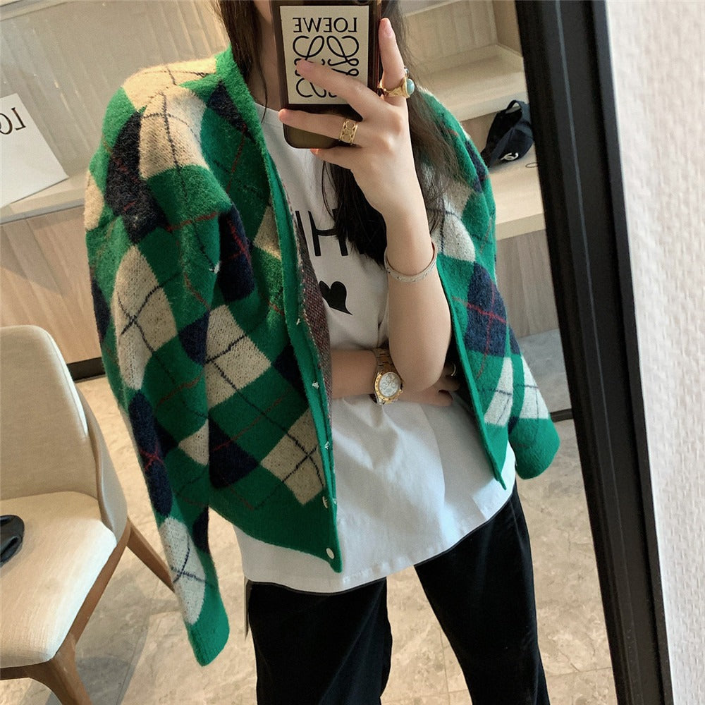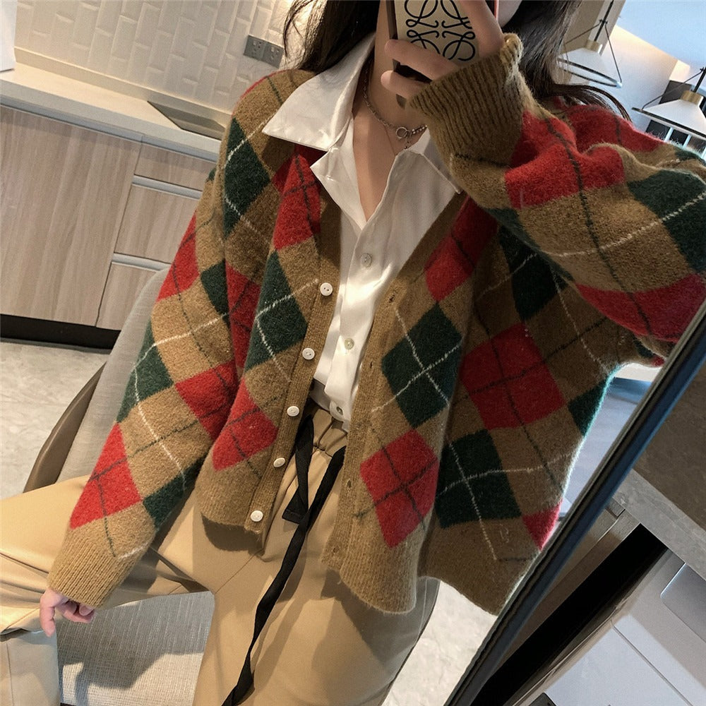 Preppy Aesthetic Outfits V-neck Knitted Cardigan Women's Loose Autumn and Winter Vintage Sweater Coat