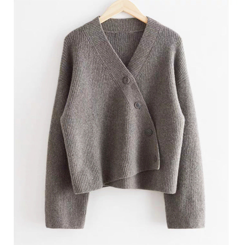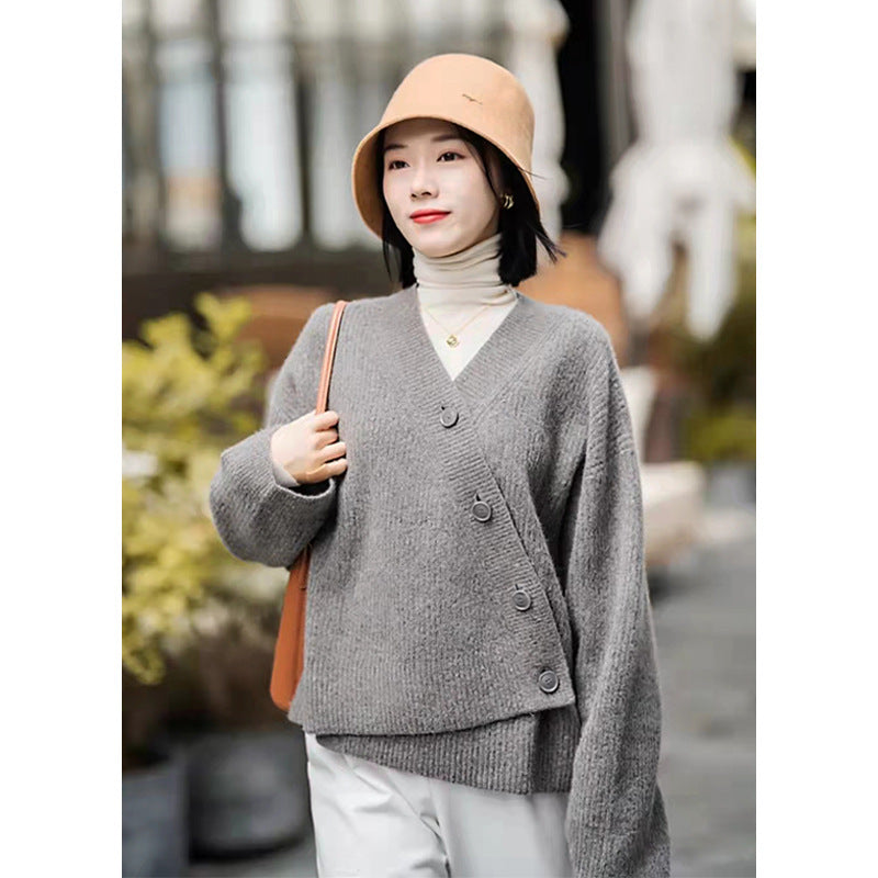 Preppy Aesthetic Outfits Autumn Leisure Wool V-neck Oblique Button Cardigan Women's Knitted