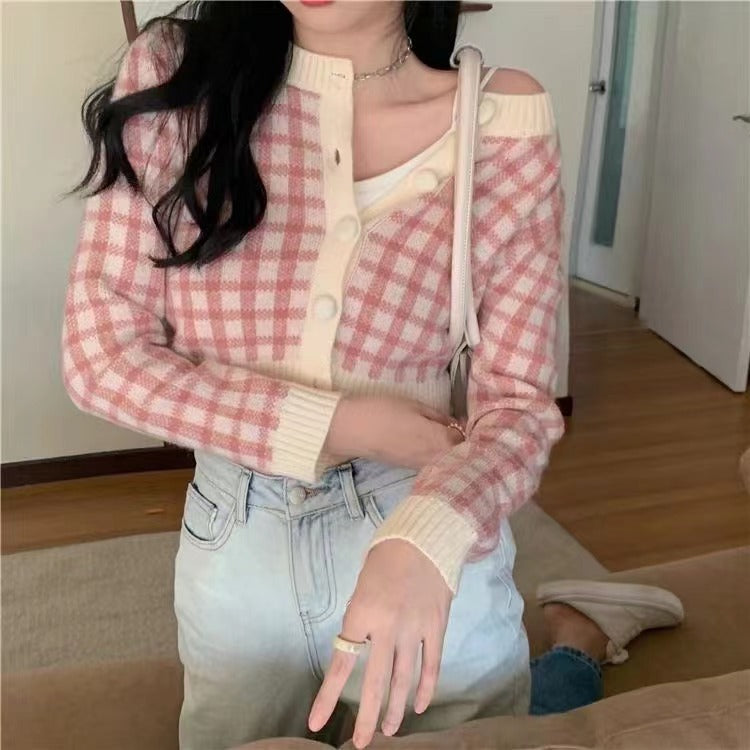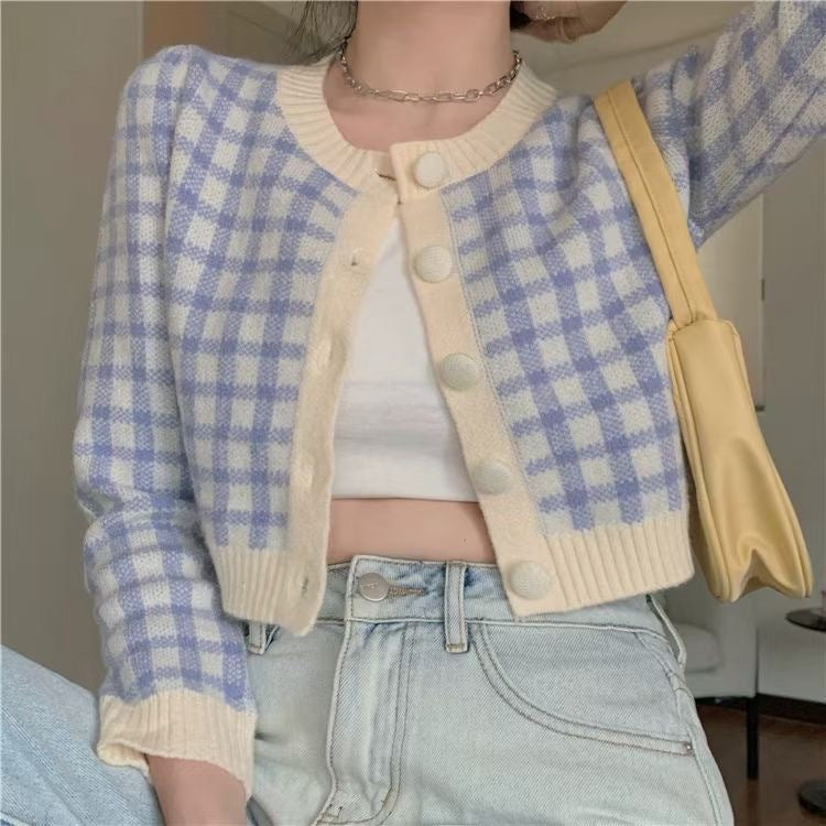 Preppy Aesthetic Outfits Round Neck Plaid Long Sleeve