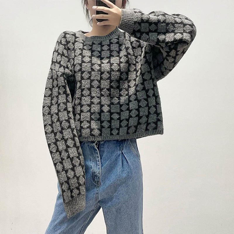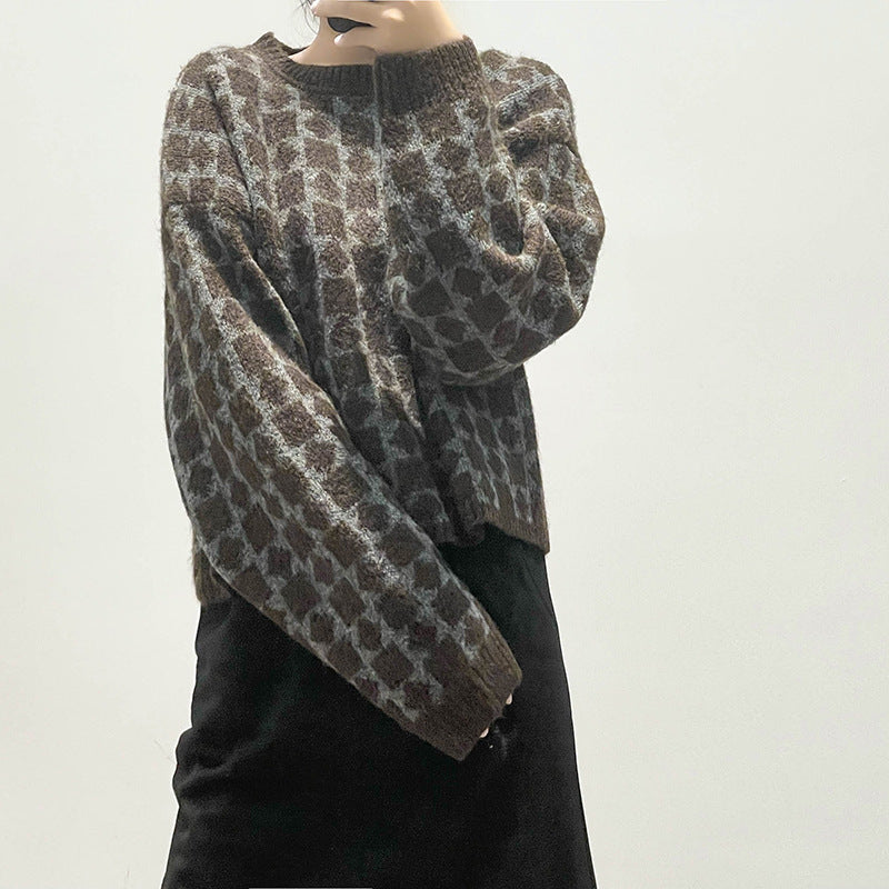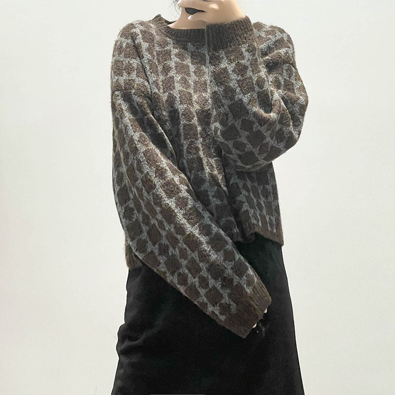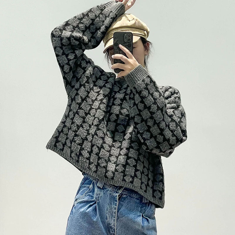 Preppy Aesthetic Outfits Checkerboard Plaid Rhombus Sweater