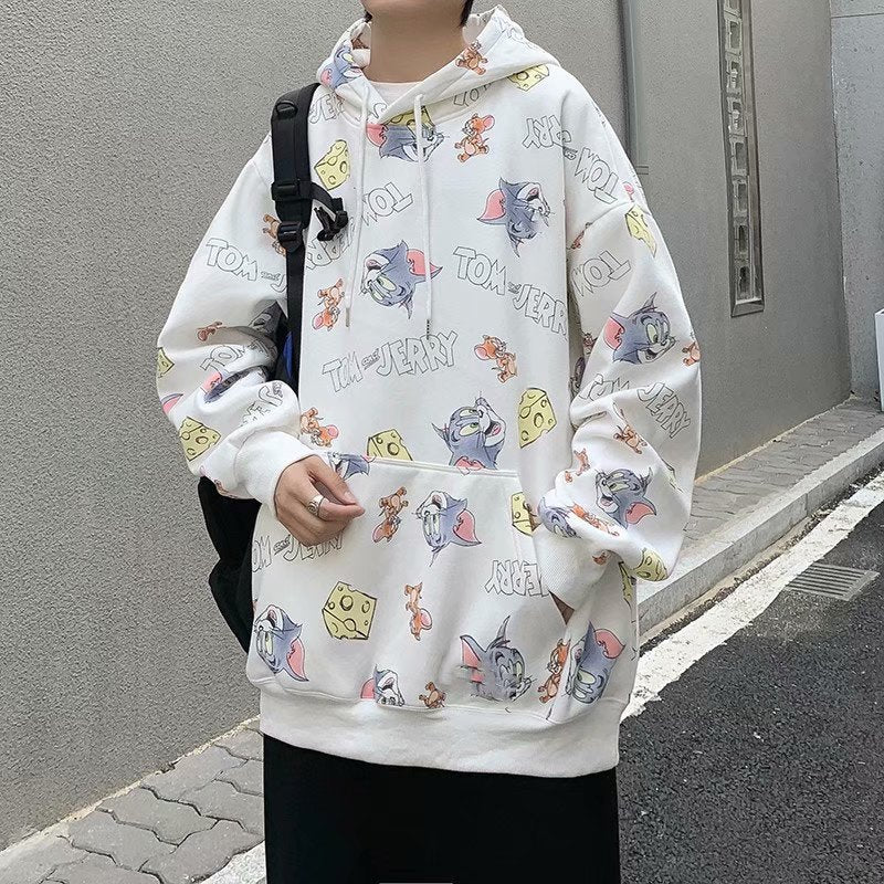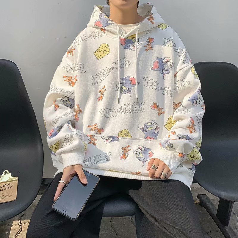 Tom and Jerry Hoodie Trend Cartoon Trendy Brand Autumn Vintage Print Men's Hooded Loose