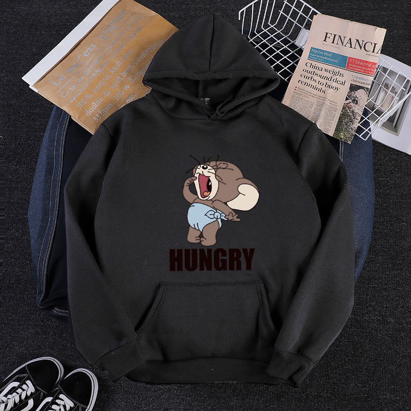 Tom and Jerry Hoodie Autumn and Winter Loose Cat and Mouse Hooded Fleece Lined Sweater Men and Women