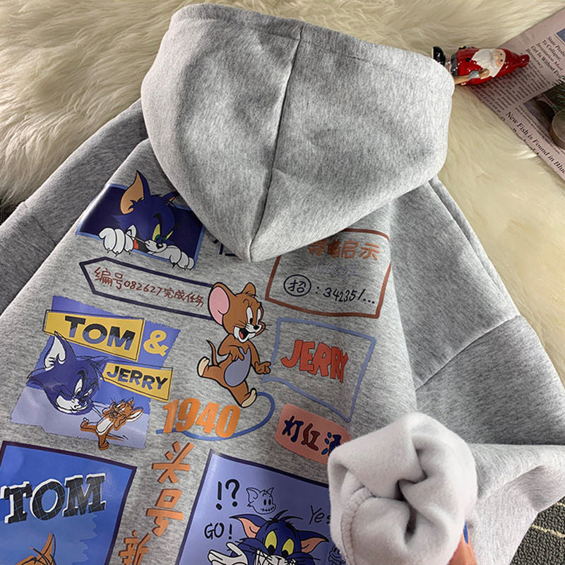 Tom and Jerry Hoodie Plus Velvet Thickening