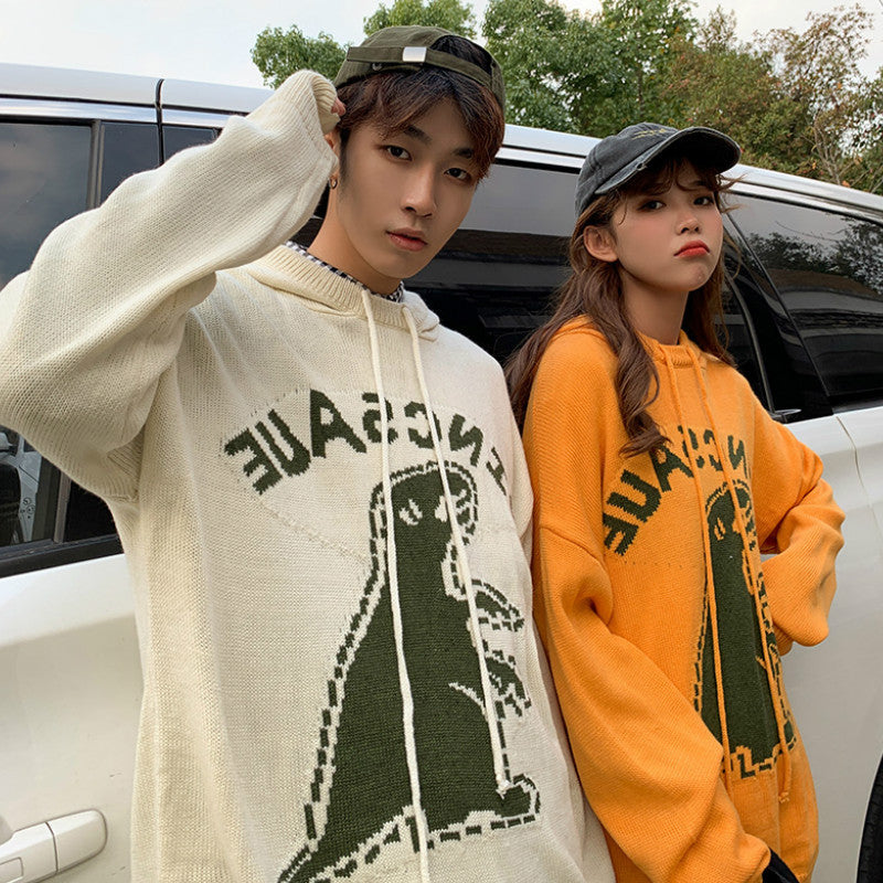 Dinosaur Sweaters Vintage Cartoon Dinosaur round Neck Sweater