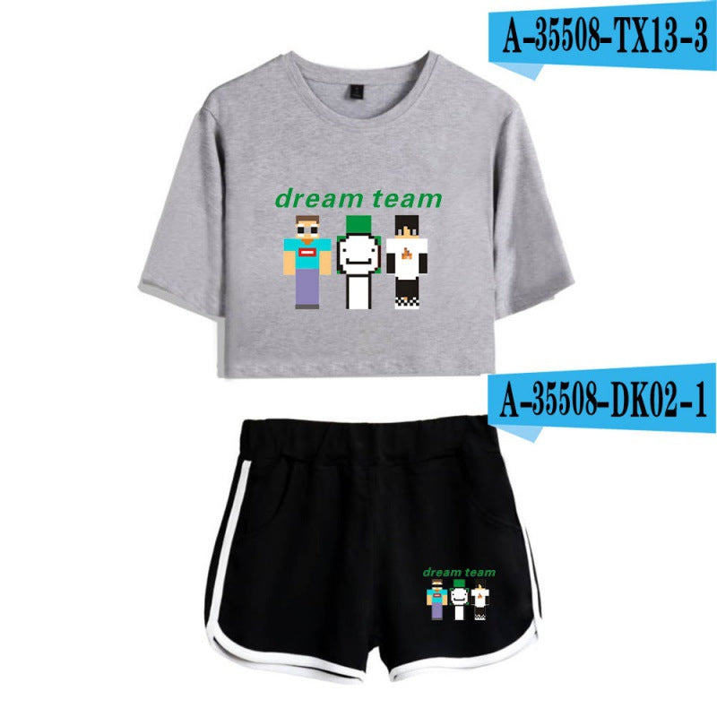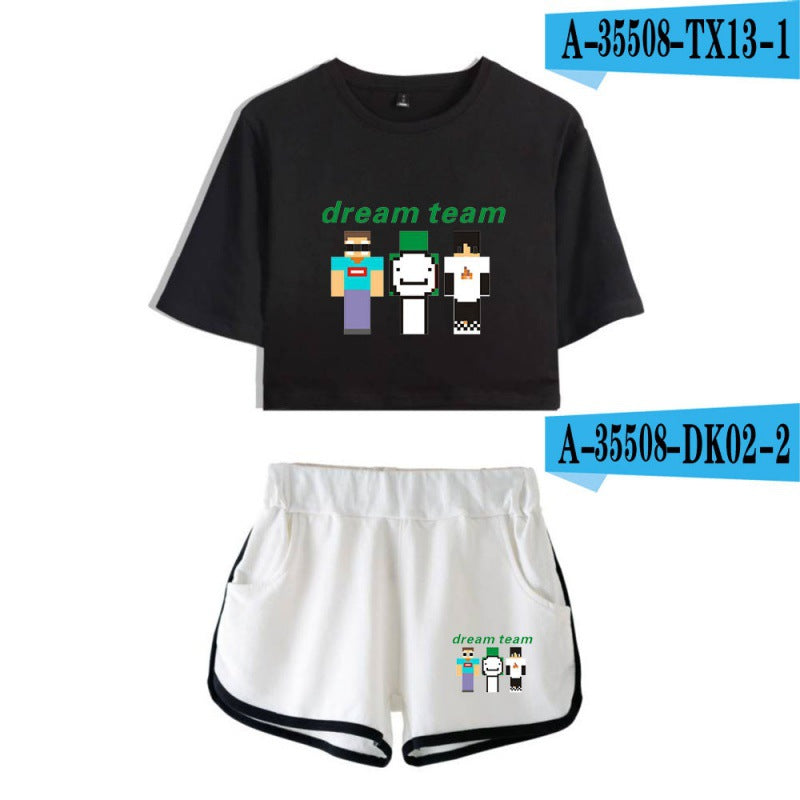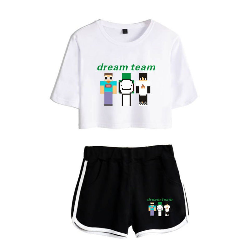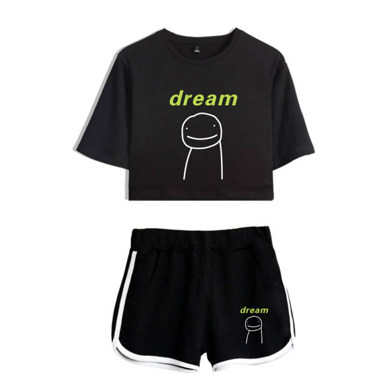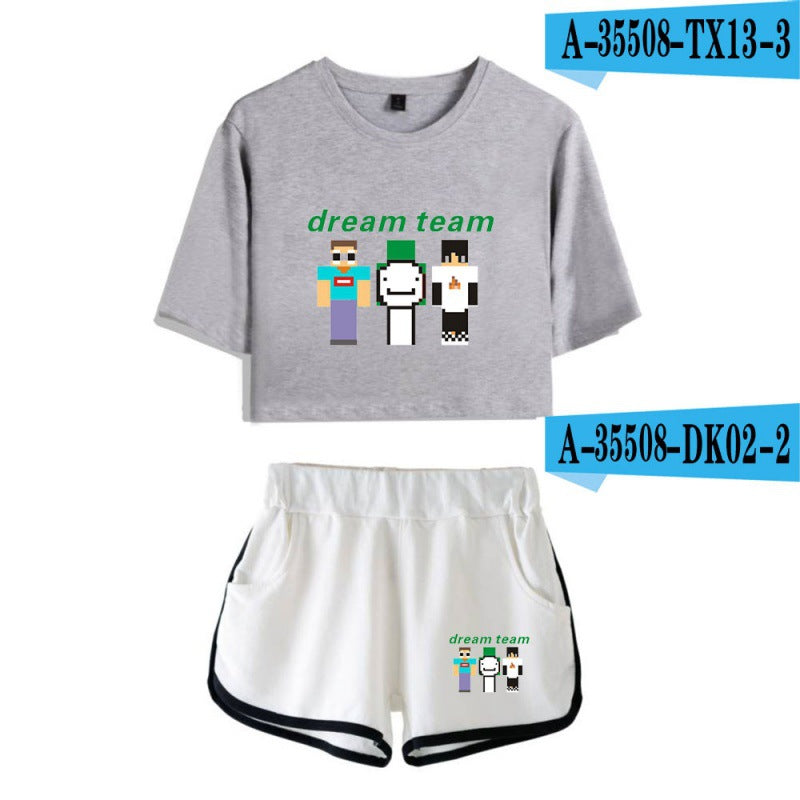 Dreamwastaken Men's Novelty Hoodies Dream Merch Shirt Printed Sexy Navel Exposed T-shirt Shorts Set