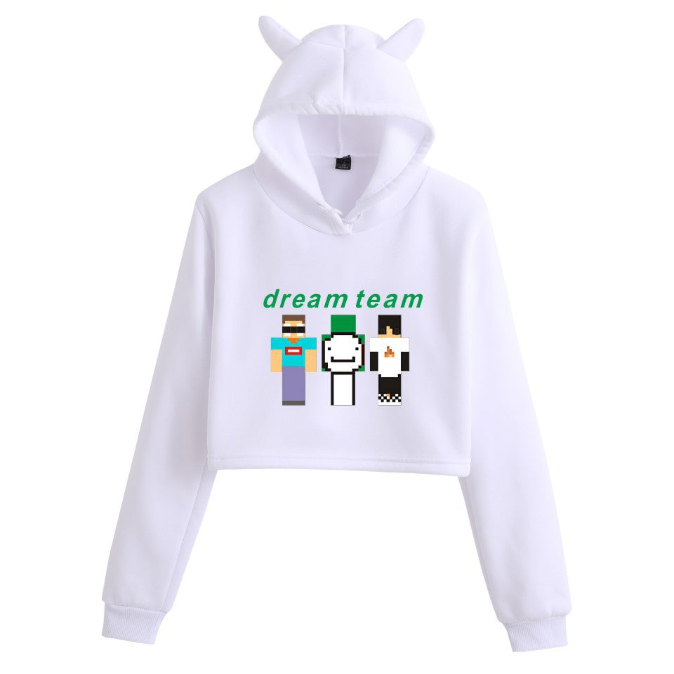Dreamwastaken Men's Novelty Hoodies Dream Merch Shirt Fashion Cat Ears Exposed Navel Hooded Women's Sweater
