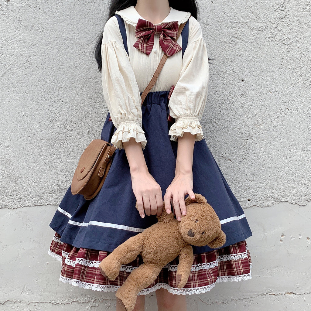 Gothic Lolita Harajuku Style Clothing College Style Blouse Suspender Skirt Two-Piece Stitching Pettiskirt