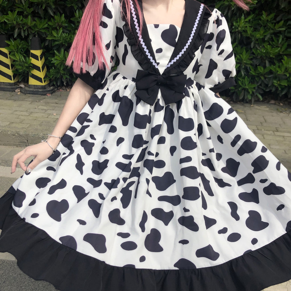 Gothic Lolita Harajuku Style Clothing Bowknot Cow Print Student Sweet Dress