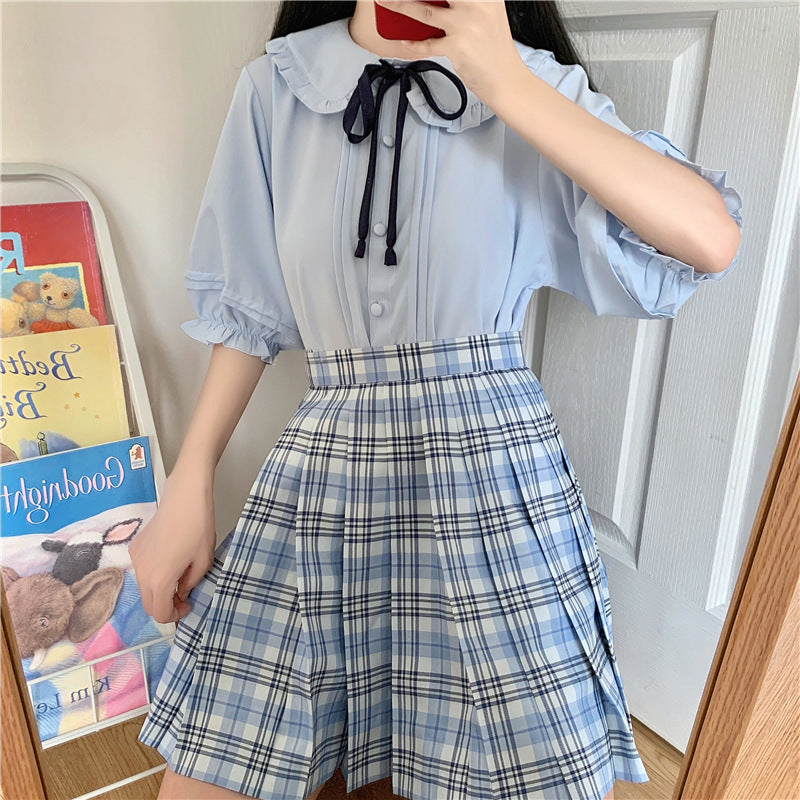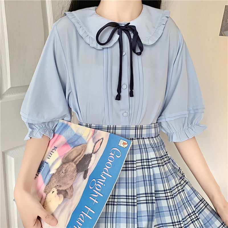 Gothic Lolita Harajuku Style Clothing Shirt Short Sleeve JK Solid Color Shirt