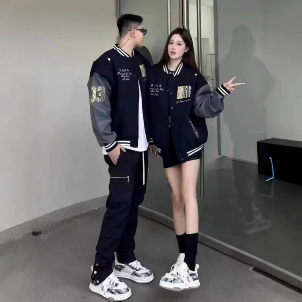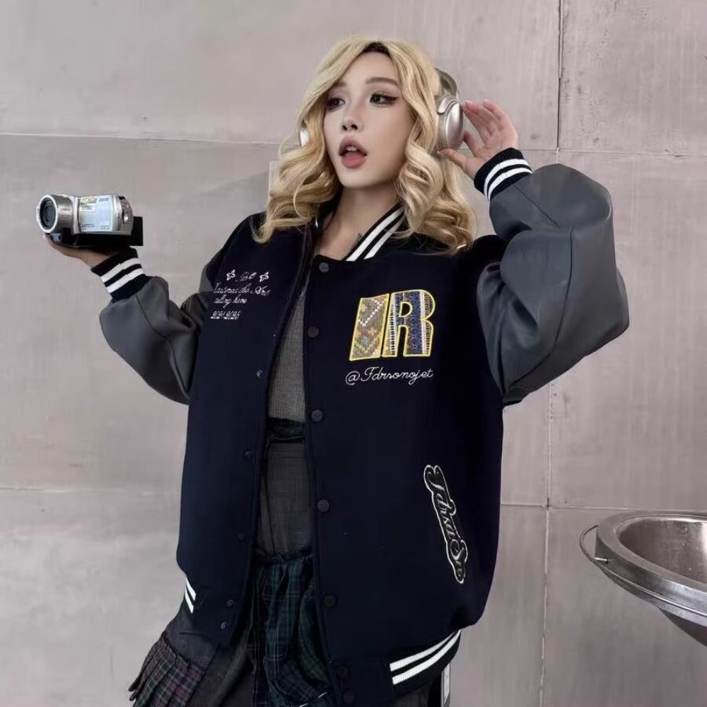 Unisex Baseball Jersey Vintage Embroidered Baseball Jacket PU Jacket