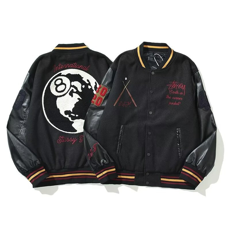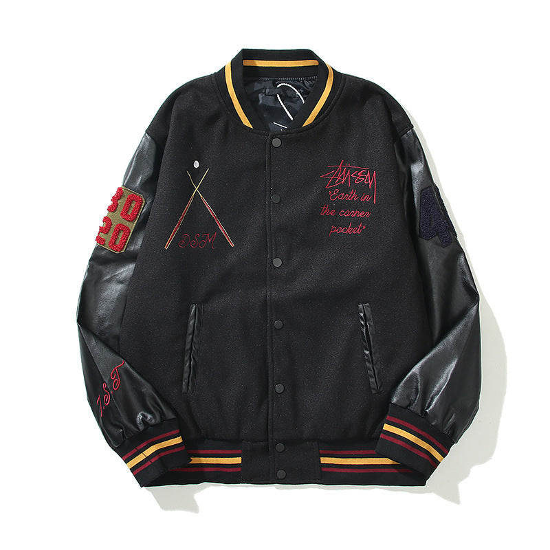 Unisex Baseball Jersey Jacket Hip Hop Embroidered PU Jacket
