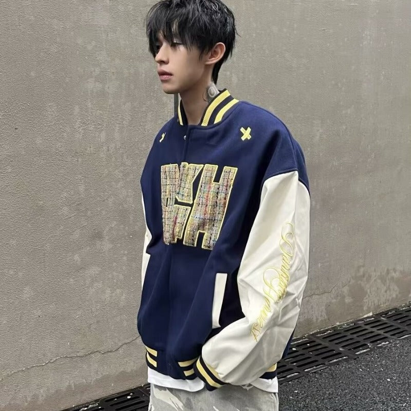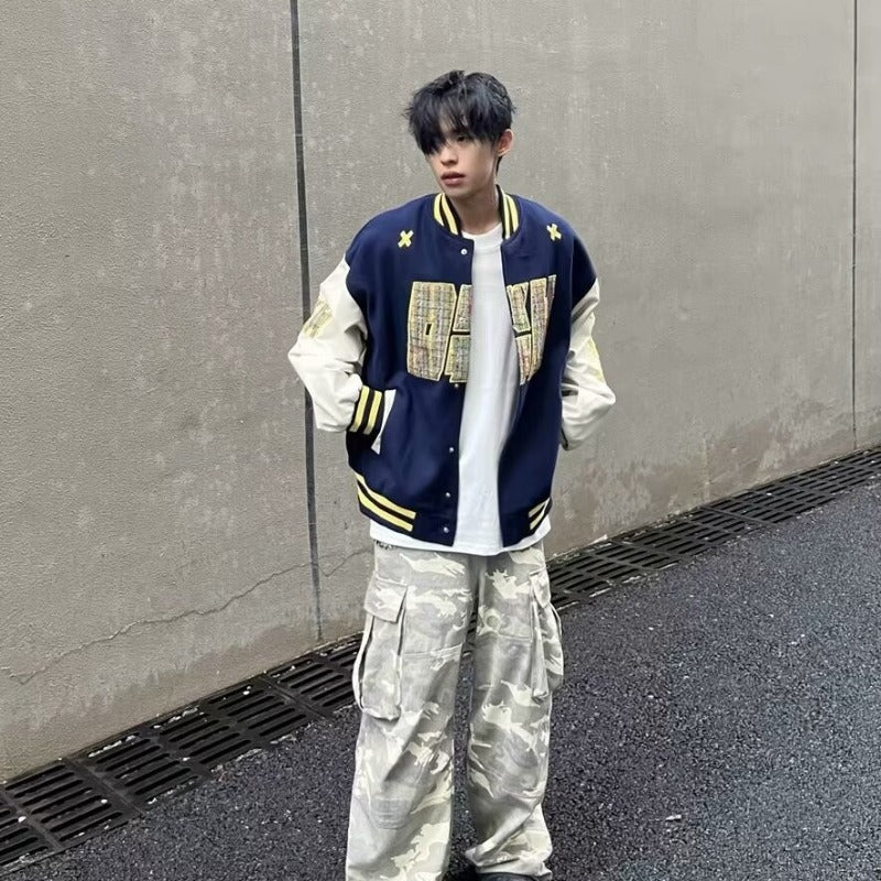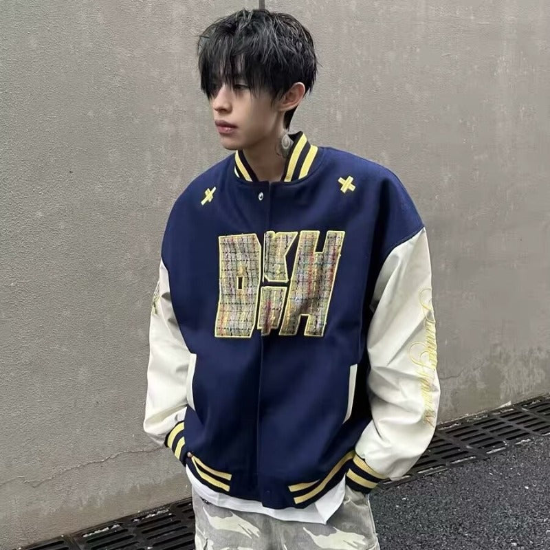 Unisex Baseball Jersey Embroidered PU Leather Stitched Baseball Jacket Loose Jacket