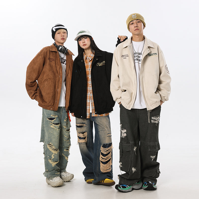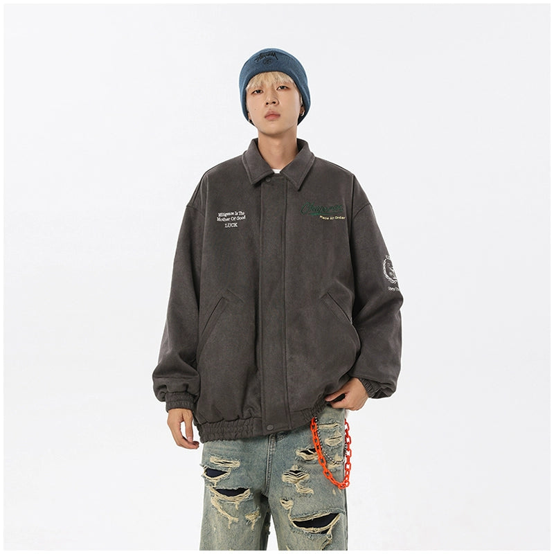 Unisex Baseball Jersey Flight Jacket Fall Loose Lapel Jacket