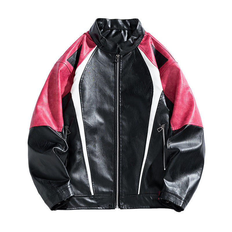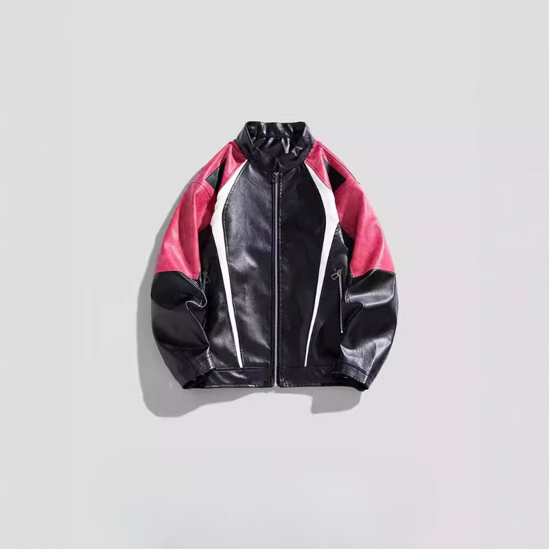 Unisex Baseball Jersey PU Leather Jacket Spring/Autumn Stand-Up Jacket