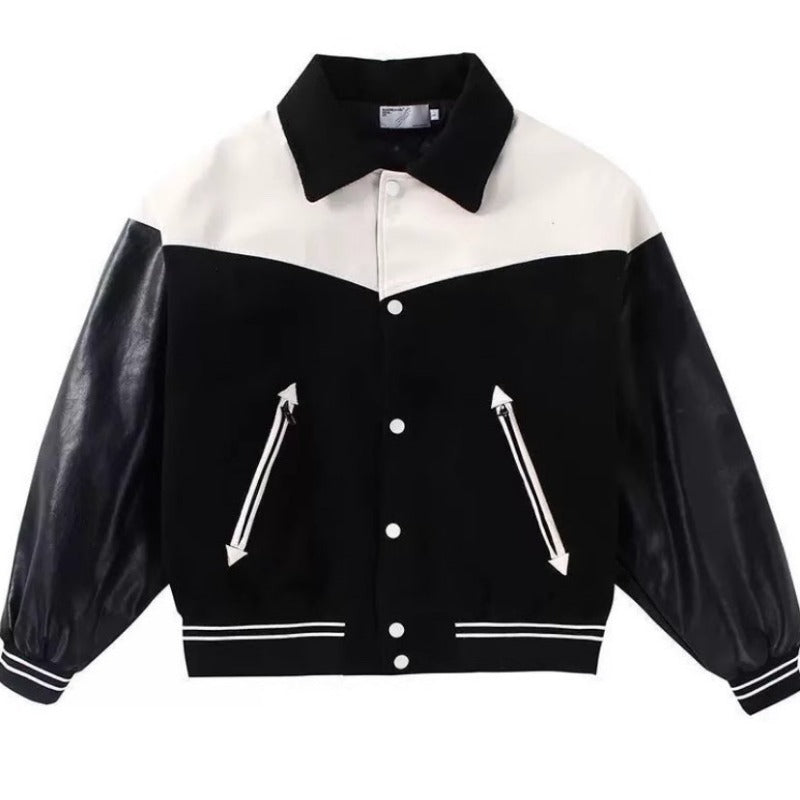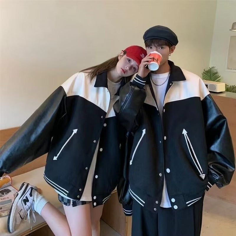 Unisex Baseball Jersey Vintage PU Baseball Jacket Autumn Loose Jacket