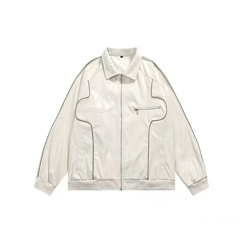 Unisex Baseball Jersey PU Vintage Casual Loose Couple Jacket
