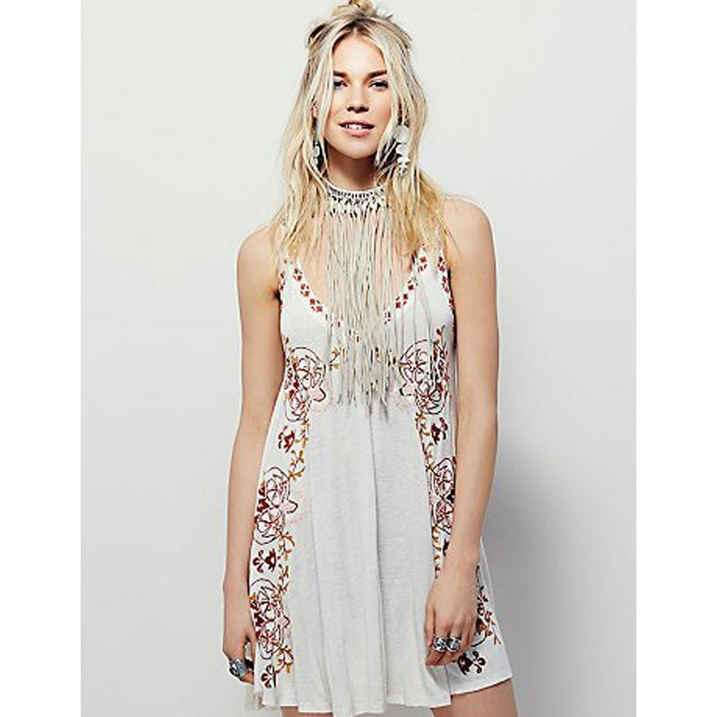 Women Dresses V-neck Vintage Embroidered Midi Dress