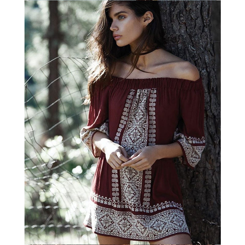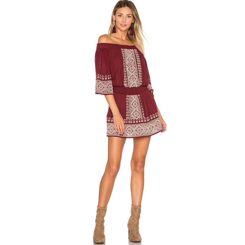 Women Dresses Summer Embroidered off-Shoulder Waist Dress