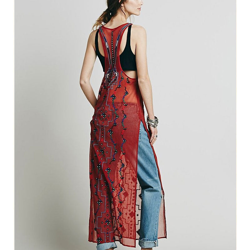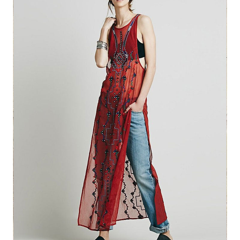 Women Dresses Beaded Embroidery Vest Sleeveless Maxi Dress