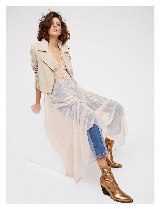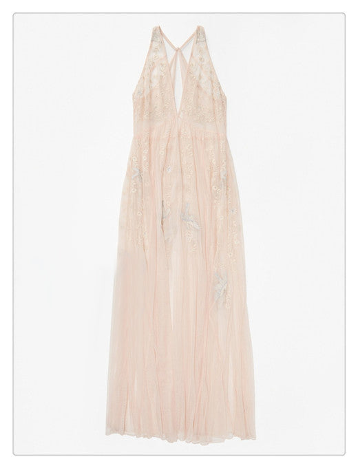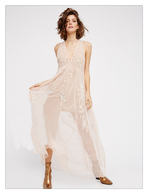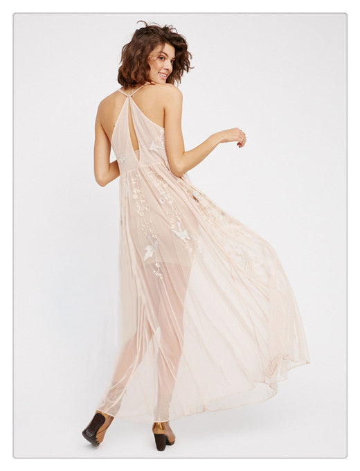 Women Dresses Summer Sexy V-neck Backless Embroidered Suspenders