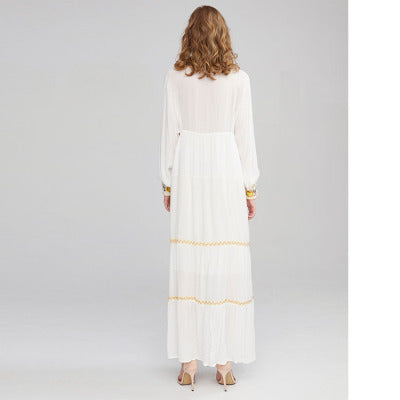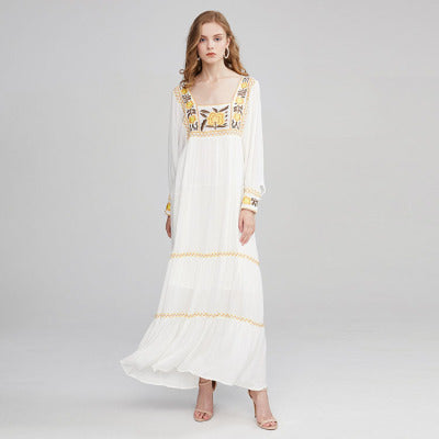 Women Dresses Bohemian Long Sleeve Embroidered Flower Robe Dress Shirt