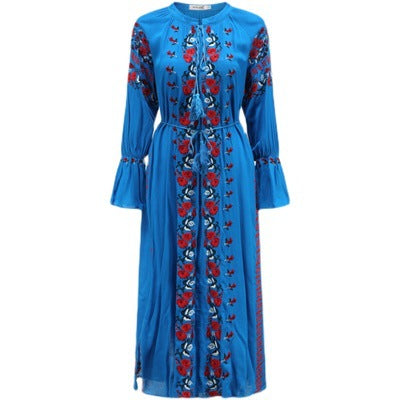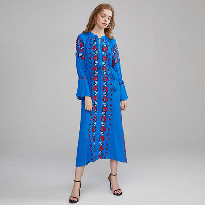 Women Dresses Bohemian Fashion Embroidered Floral V-neck Dress