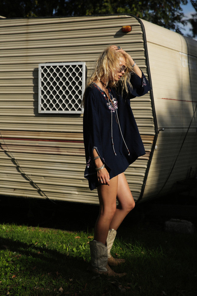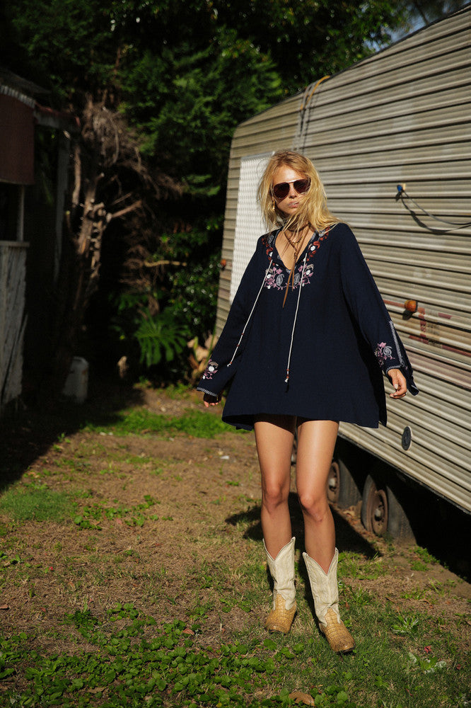 Women Dresses Embroidered Floral Long Sleeve Dress