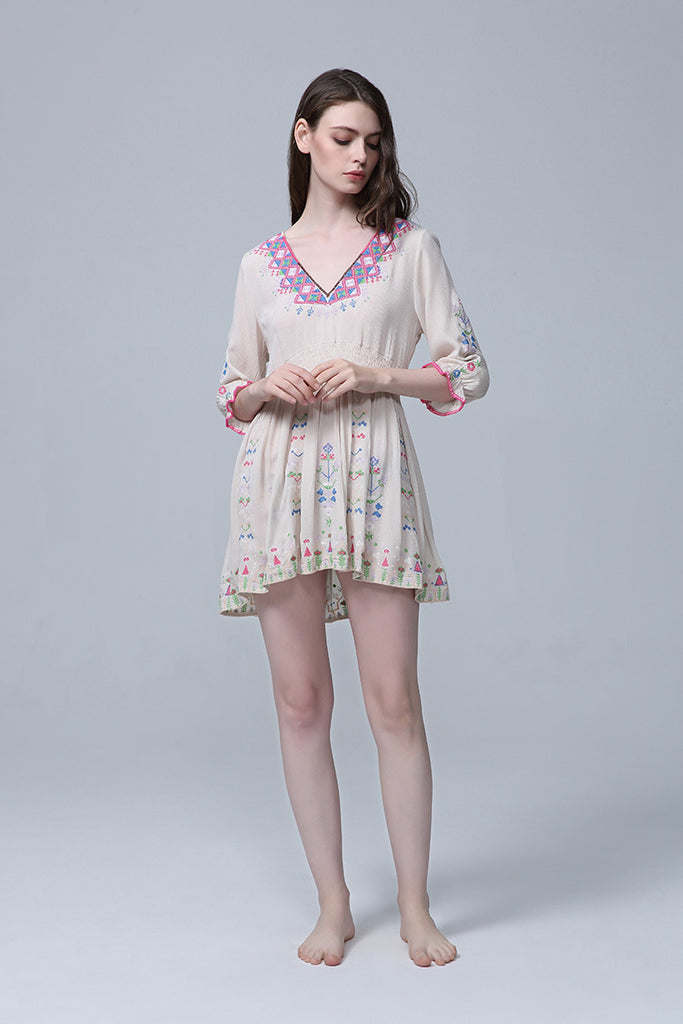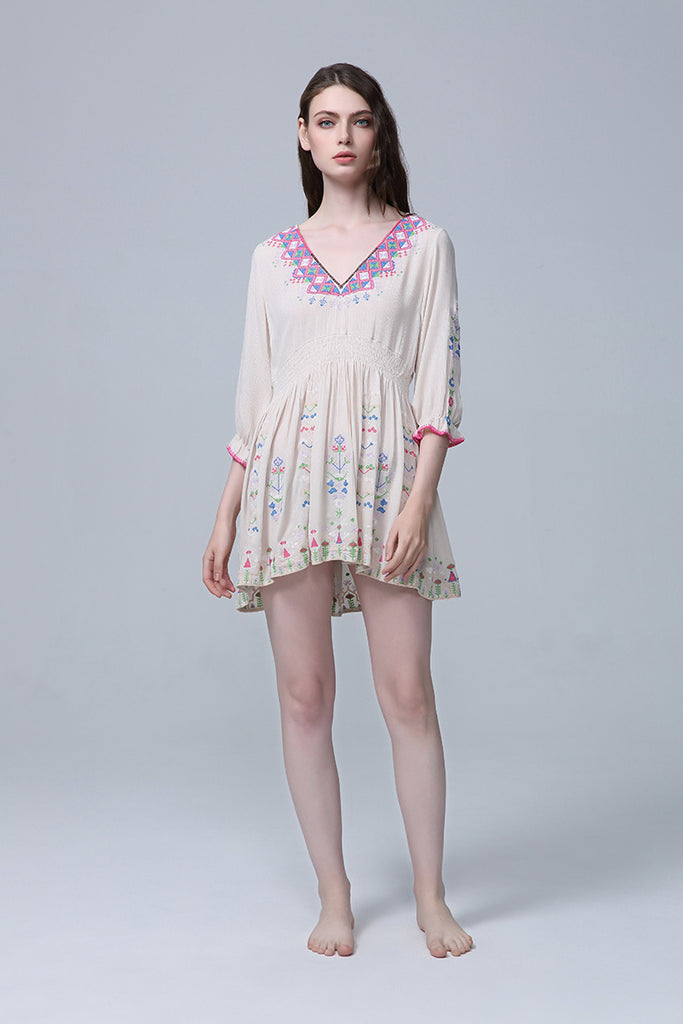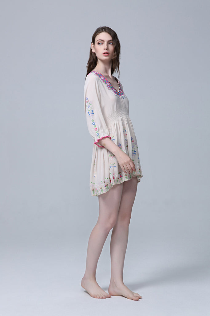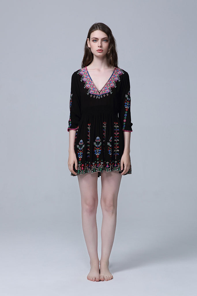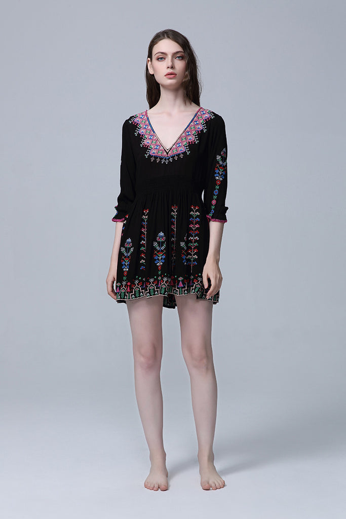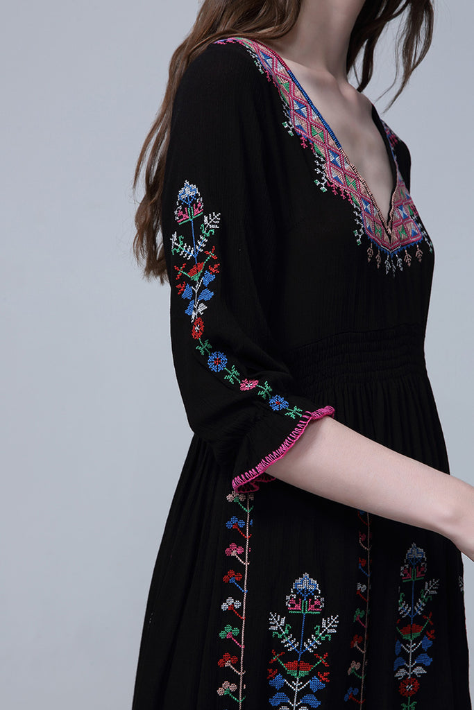 Women Dresses V-neck Embroidery Flower Dress