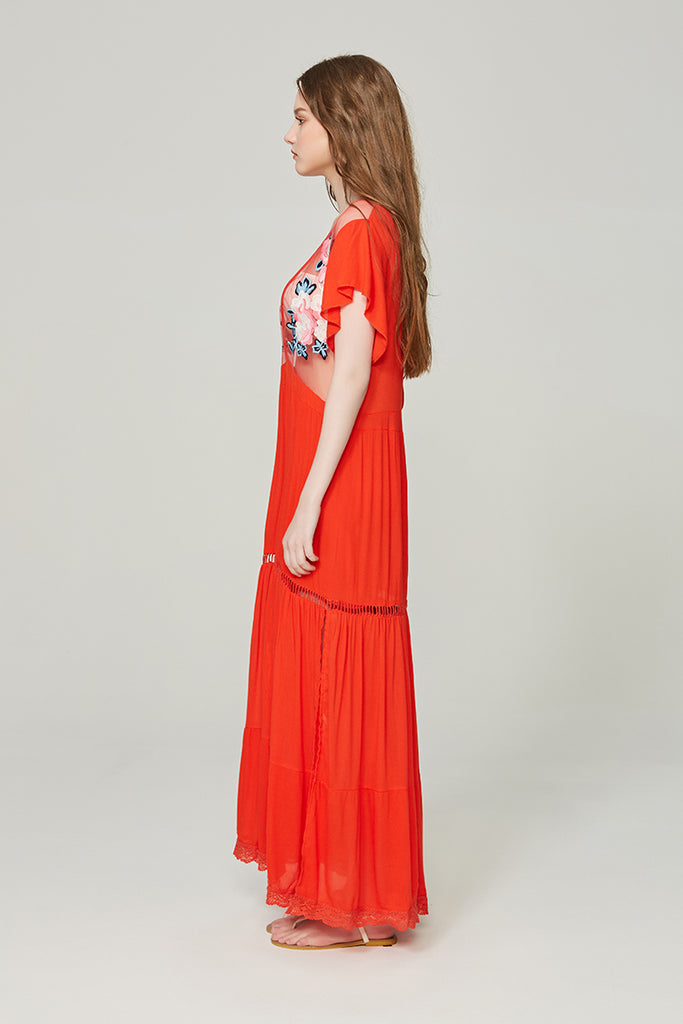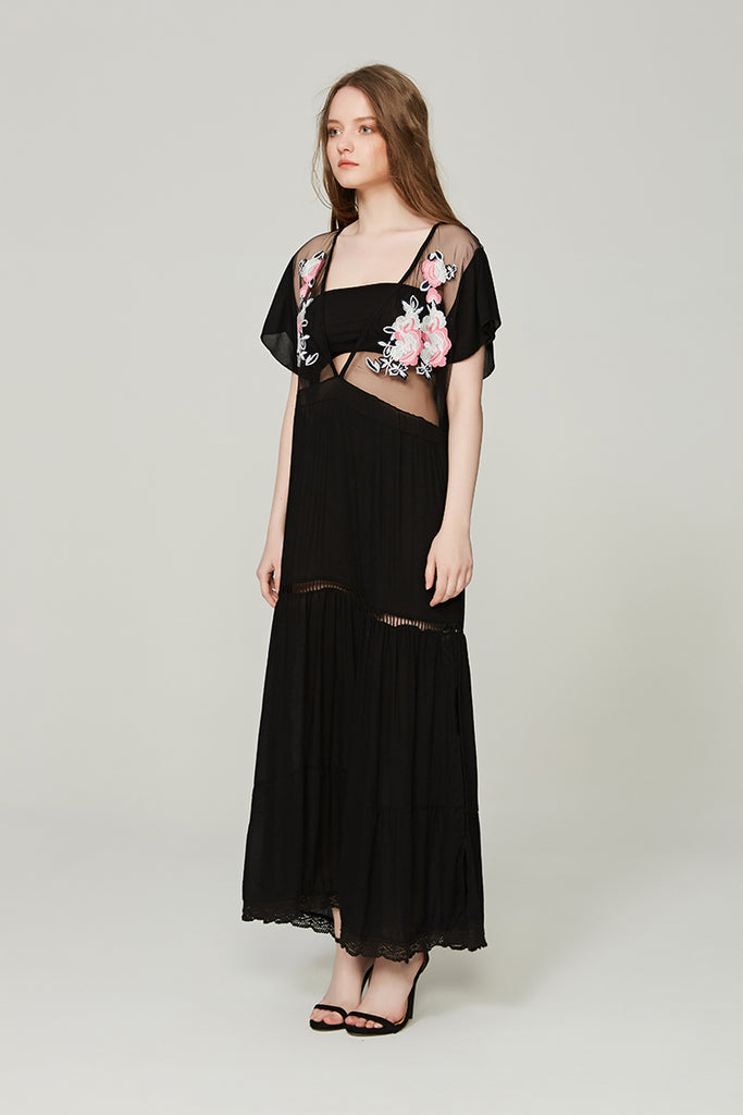 Summer Embroidered See-through Waist Split Expansion Skirt Dress